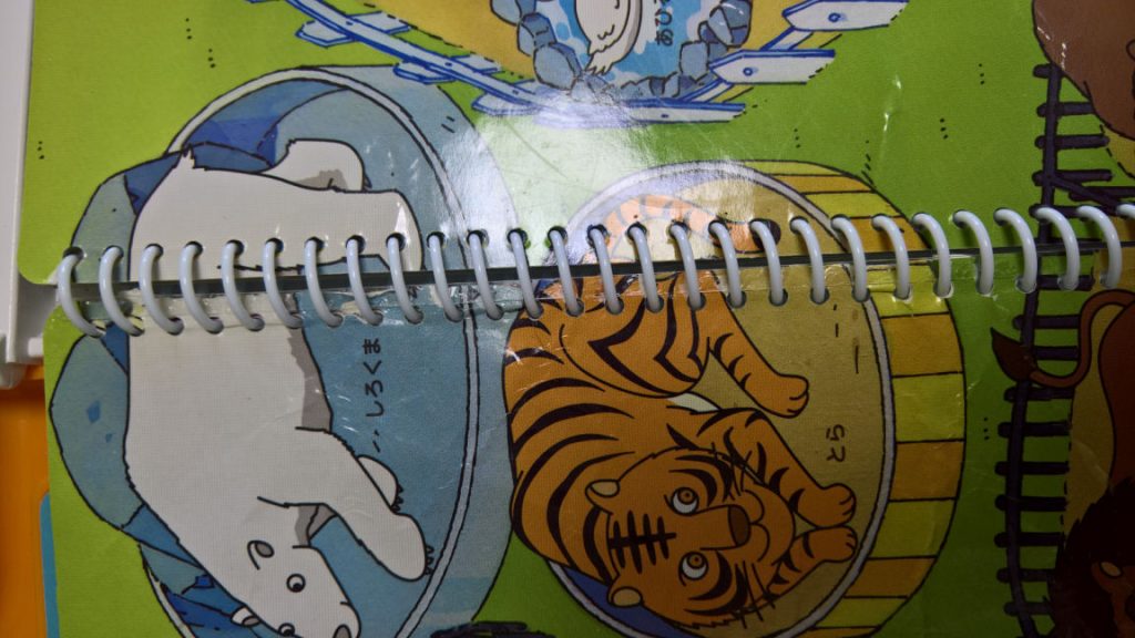 このリング綴じの部分、こどもがページを上半分くらい破いてしまいました。