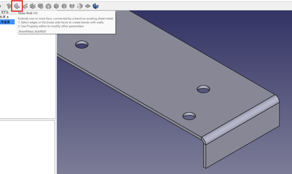 - Sheet Metal ワークベンチに切り替える。(拡張機能の追加でインストール必要)