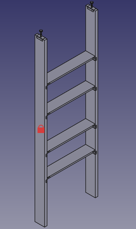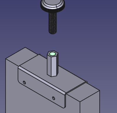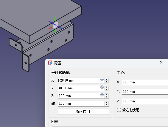 - 2×4材用アジャスター、側板、それぞれ作図したときに原点=中心になるようにしたので固定ジョイントだけでいい感じの場所に固定された。