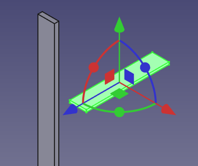 - ツリーから棚板を選ぶと移動・回転するためのXYZ軸の矢印が出てくる。(ギズモ、と呼ぶらしい?)