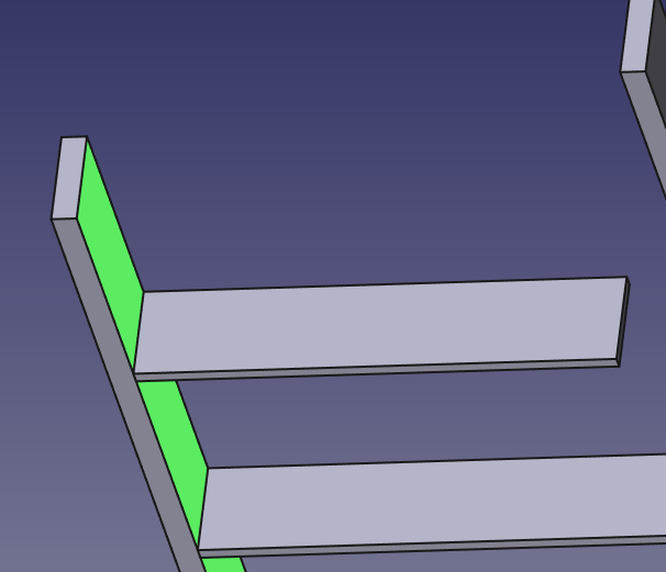 - まず側板に対して棚板が上下にスライドして高さ調整するイメージで、接する辺をそれぞれ選択した状態とする。
