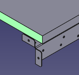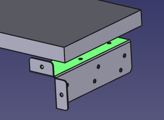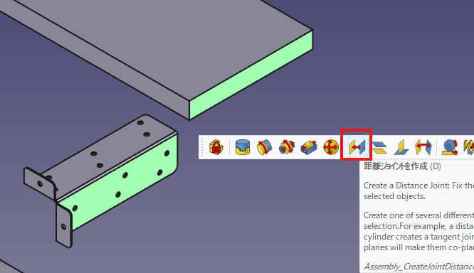 - さらに棚板の前面と取付金具の面を選択し、同様に距離ジョイント(0mm)。