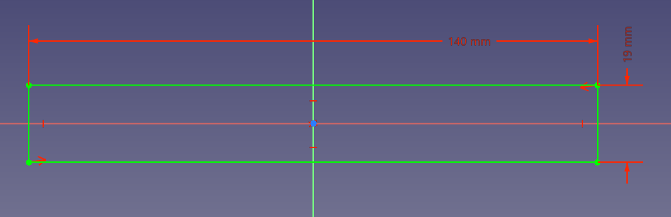 - 1×6材の断面(19mm×140mm)の長方形を原点を中心に書く。