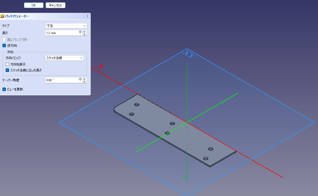 - Pad で板厚1.2mm、逆方向に押し出します。