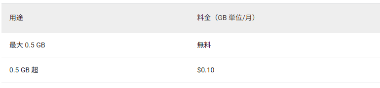0.5GBを超えると、1GBごとに約$0.10/月≒15円/月ほど発生します。